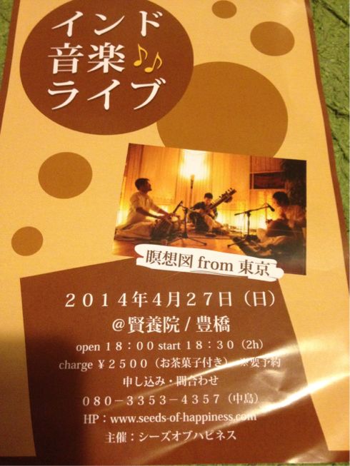 インド音楽の瞑想図さんが、豊橋に来て頂ける事になりました〜。