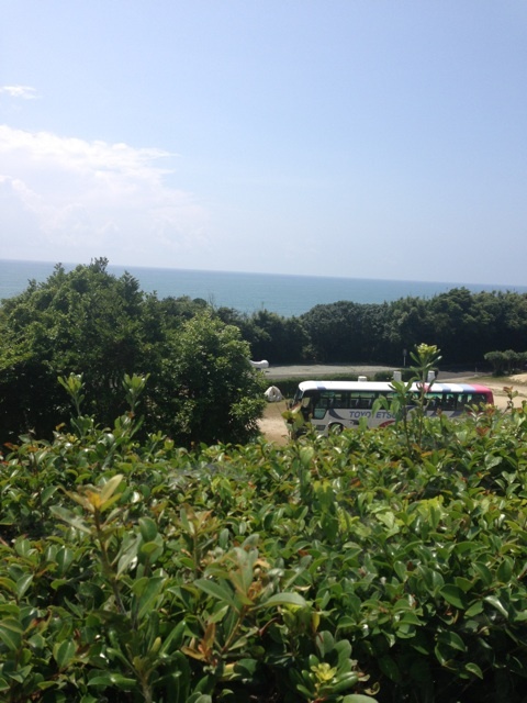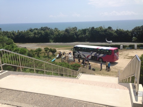 みんなはこれからバスで海岸の出発地点へと向かいます。